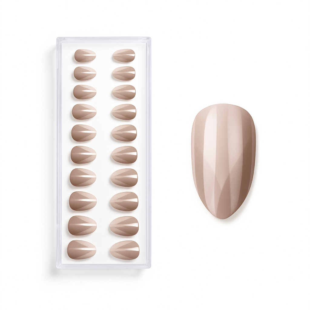 Kies de juiste maat press-on nail voor elke vinger en breng een dun laagje lijm aan op je natuurlijke nagel.