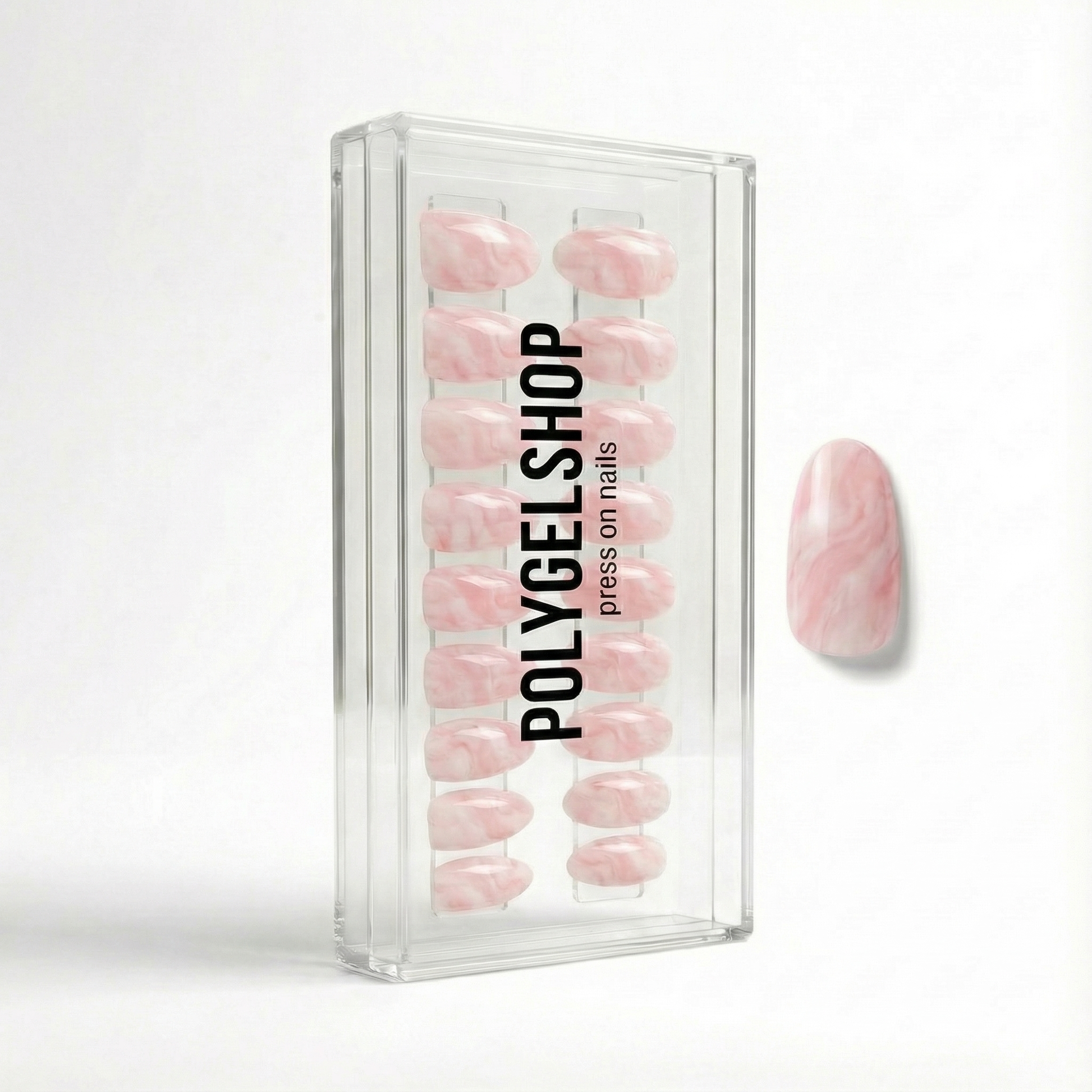 Deze prachtige press-on nails in de kleur roze marmer geven je handen een verfijnde, vrouwelijke uitstraling die perfect past bij elke gelegenheid.